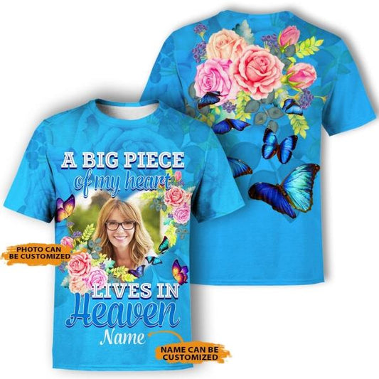 Personalized Memorial Shirt A Big Piece Of My Heart Butterfly For Mom, Dad, Grandpa, Son, Daughter Custom Memorial Gift M180