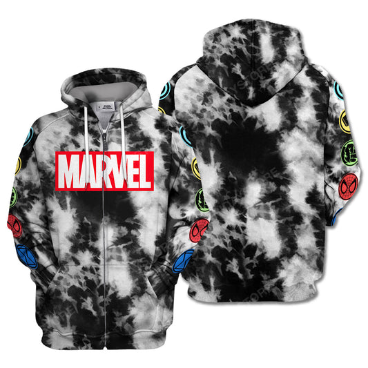 MV T-Shirt MV Super Hero Symbols Tie Dye Black White Hoodie MV Hoodie