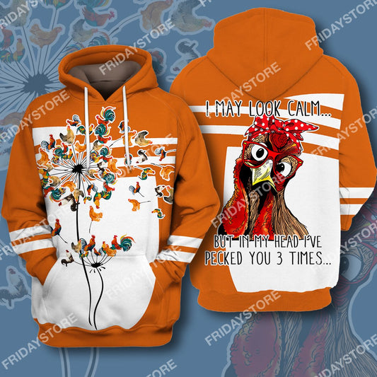 Chicken Hoodie Chicken I May Look Calm But In My Head I've Pecked You T-shirt Hoodie Adult
