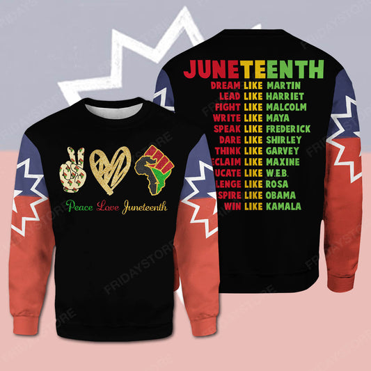 Juneteenth T-shirt Peace Love Junteenth Black Red Green Yellow T-shirt Juneteenth Hoodie Juneteenth