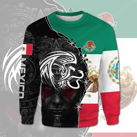 Mexican T-shirt Mexican Flag Eagle Emblem Aztec Warrior T-shirt Mexican Hoodie