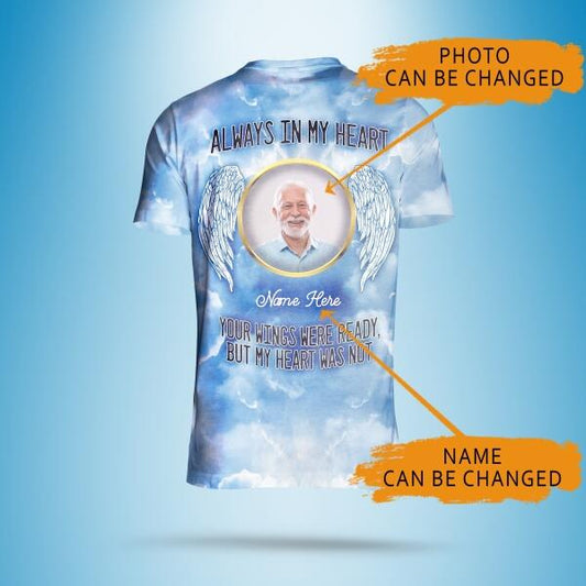 Personalized Memorial Shirt Always In My Heart For Mom, Dad ,Grandpa, Son, Daughter Custom Memorial Gift M158