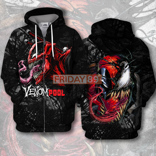 MV Venom T-shirt Amazing Venom DeadPool Red Black Hoodie MV Venom Hoodie