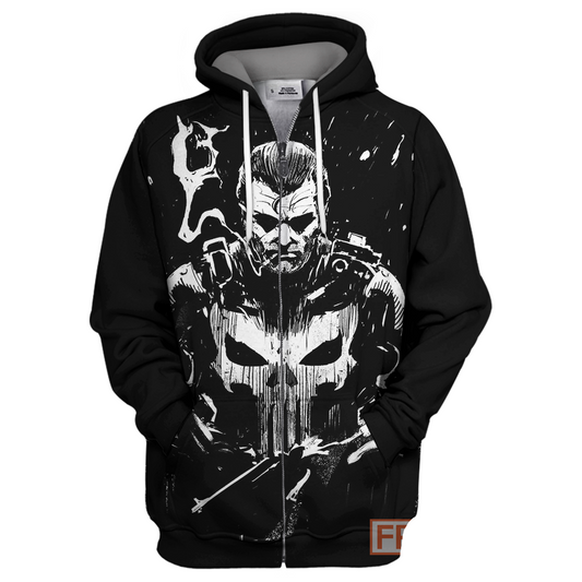 Punisher MV T-shirt Punisher Hoodie Black & White Punisher Shirt Black T-shirt Punisher MV Hoodie