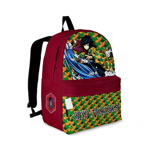 Demon Slayer Backpack Giyu Tomioka Clothes Pattern Backpacks Green Red