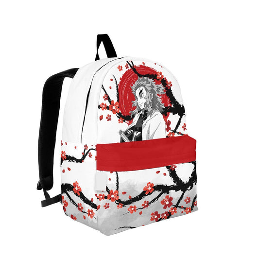 Demon Slayer Backpack Rengoku Japanese Cherry Blossom Pattern Backpacks White Red