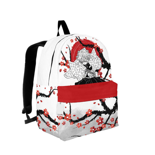 Demon Slayer Backpack Zenitsu Japanese Cherry Blossom Pattern Backpacks White Red