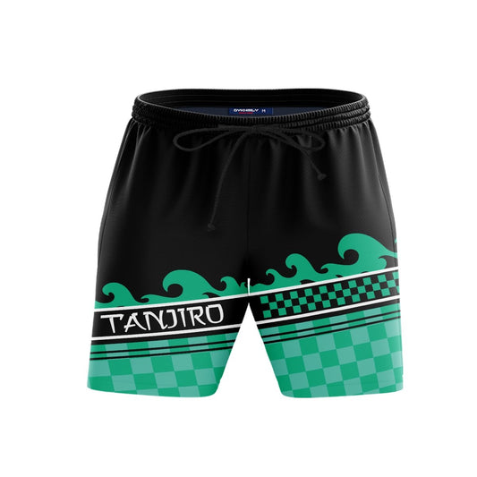 Demon Slayer Shorts Demon Slayer Tanjiro Komado Pattern Beach Shorts Black Green