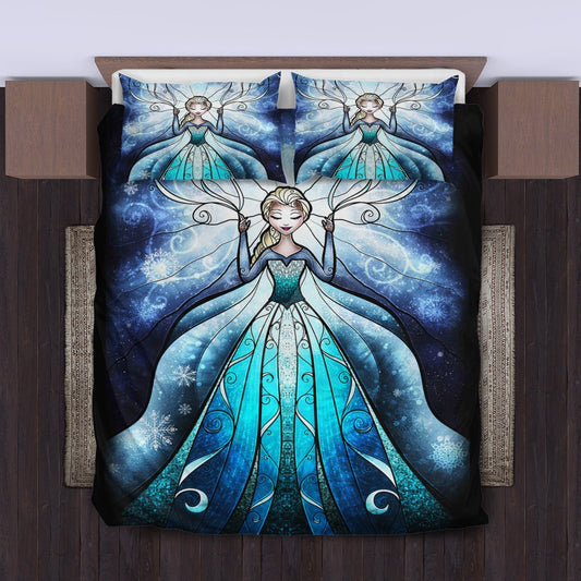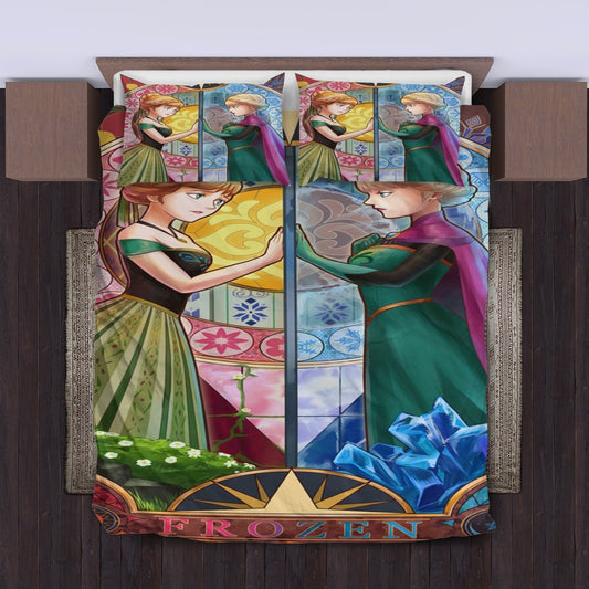 Frozen Bedding Set Frozen Elsa Stained Glasses Style Duvet Covers Blue Unique Gift