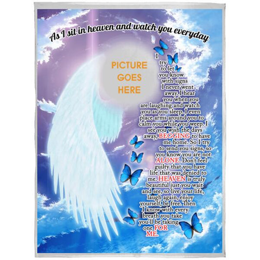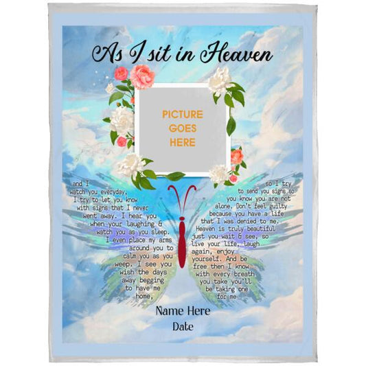 Custom Memorial Blanket With Picture For Lost Loved Ones As I Sit In Heaven Blanket Blue M200