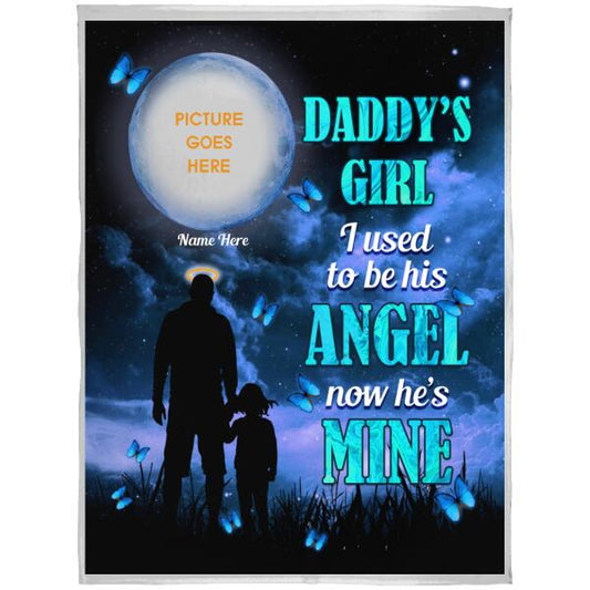 Custom Memorial Blanket For Loss Of Dad Daddy's Girl I Used To Be His Angel Blanket Blue M255