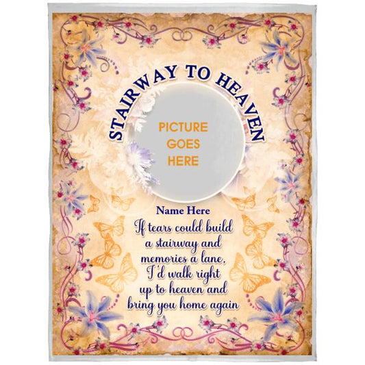 Custom Memorial Blanket With Pictures For Loss Of Dad Mom Someone Stairway To Heaven Blanket Brown M368
