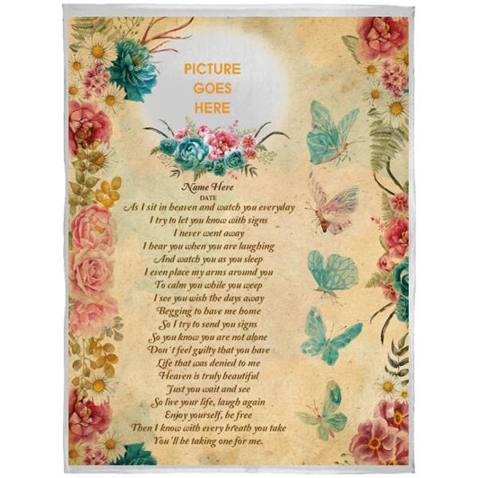 Custom Memorial Blanket With Picture For Loss As I Sit In Heaven Butterfly Signs Blanket Yellow M270
