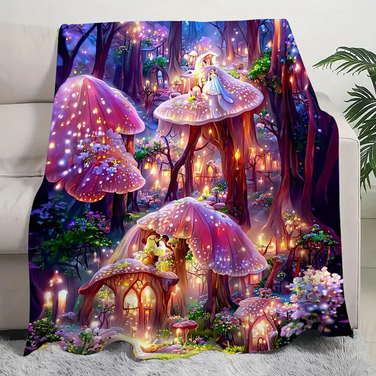 Mushroom Blanket Magical Mushroom Forest Town Blanket Pink Brown