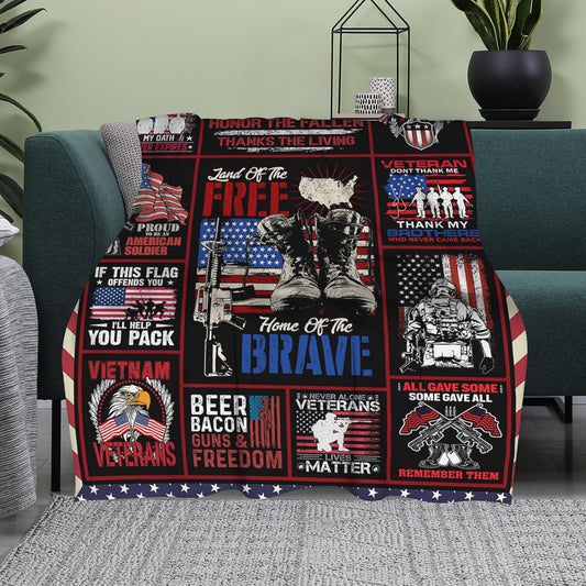 Veteran Blanket Land Of The Free Home Of The Brave Blanket Black Red