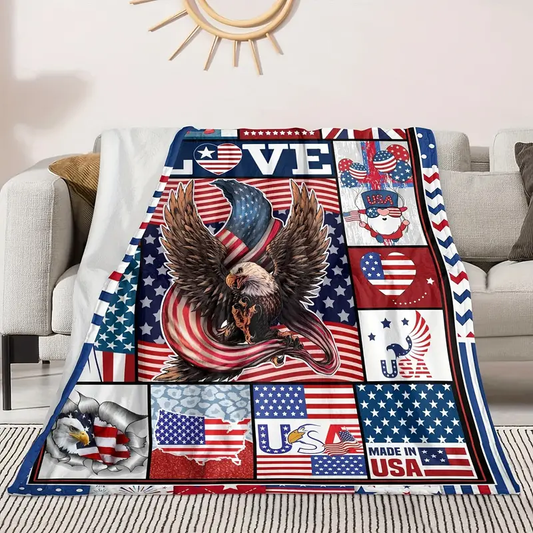 Veteran Blanket American Flag Eagle Made In USA Blanket Red Blue