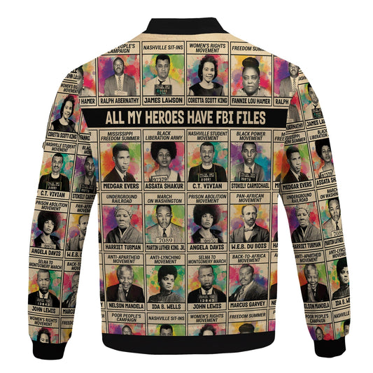 Africa Americans Bomber Jacket All My Heroes Have FBI Files Bomber White Unisex