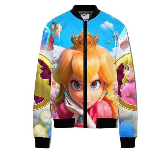 Mario Bomber Jacket Super Princess Peach Graphic Bomber Colorful Unisex