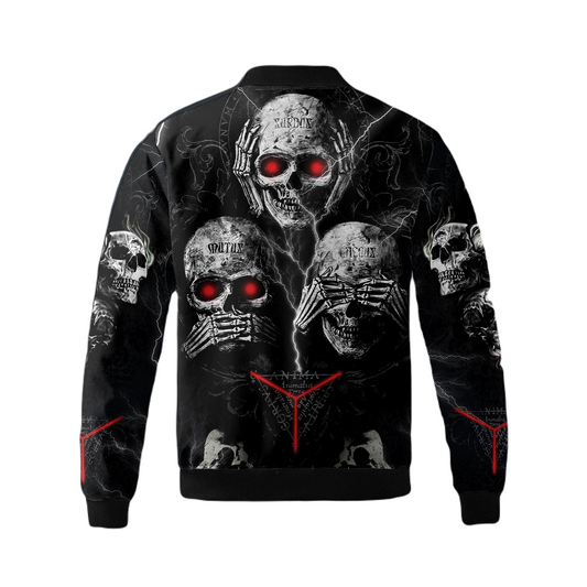 Skull Bomber Jacket Rose Dont Hear Dont Speak Dont See Skull Bomber Black Unisex