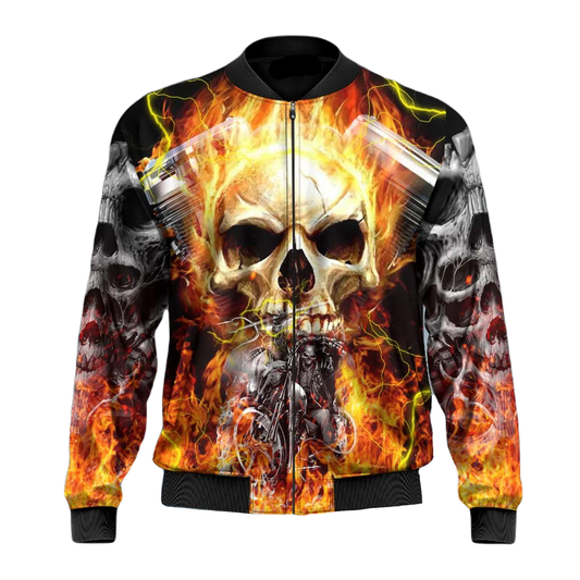 Skull Bomber Jacket Ghost Fire Biker Flame Skull Bomber Black Yellow Unisex