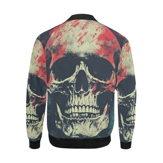 Skull Bomber Jacket Grunge Skull Splattered Pattern Bomber Black Red Unisex