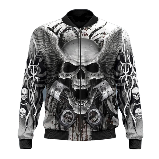 Skull Bomber Jacket Mechanical Skull Concept Pattern Bomber Gray Unisex