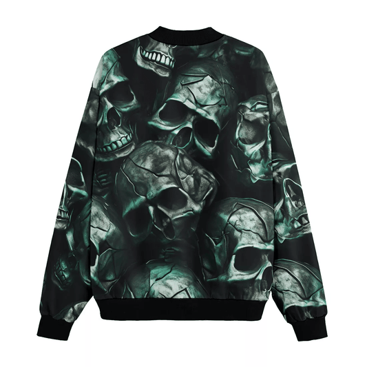 Skull Bomber Jacket Scary Broken Skull Pattern Bomber Black Green Unisex