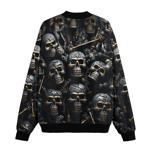 Skull Bomber Jacket Skull And Bones Pattern Bomber Black Gray Unisex