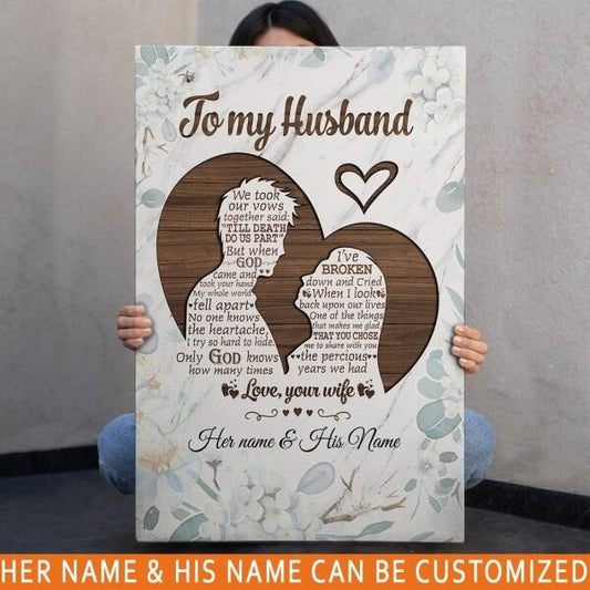 Personalized Memorial Portrait Canvas To My Husband Love Your Wife Wood Portrait Canvas Custom Memorial Gift M198
