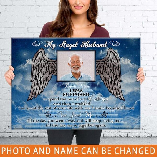Personalized Memorial Landscape Canvas My Angel Husband Wings For Loss Of Husband Landscape Canvas Custom Memorial Gift M205