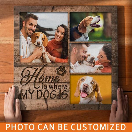 Personalized Dog Square Canvas For Dog Lovers Home Is Where My Dog Is Custom Canvas Wood D07