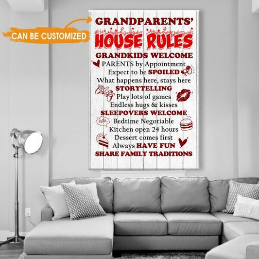 Personalized Grandparent Portrait Canvas 32x48" House Rules For Grandkids Welcome For Grandparent Custom Family Gift F15