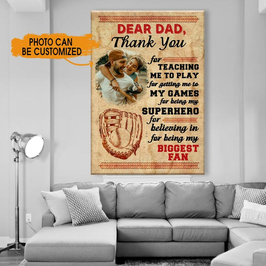 Personalized Dad Portrait Canvas Dear Dad Biggest Fan Baseball Form Daughter Son Canvas Father Day Gift F165