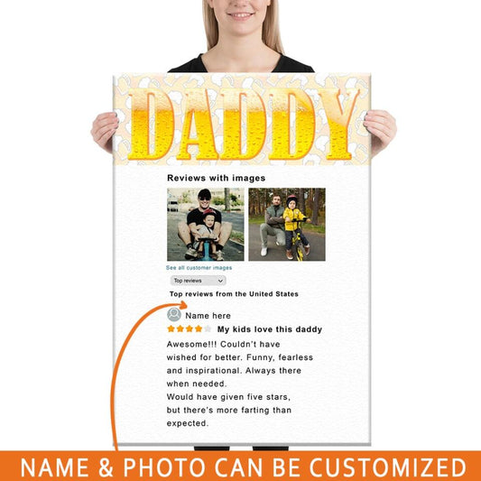 Personalized Dad Portrait Canvas Daddy Reviews Beer Canvas Custom Father's Day Gift F168