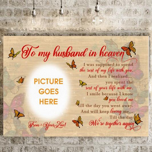 Personalized Memorial Landscape Canvas o My Husband In Heaven Butterfly Landscape Canvas For Wife Custom Memorial Gift M32