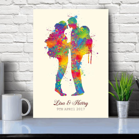 Personalized Hiking Portrait Canvas For Couple Hiking Couple Watercolor Portrait Canvas 32"x48" White