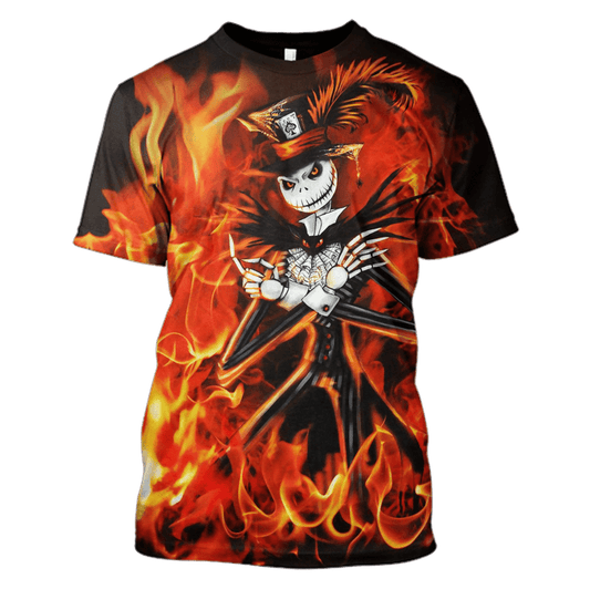 Nightmare Before Christmas T-shirt Jack Skellington Fire Hoodie Adult Full Size