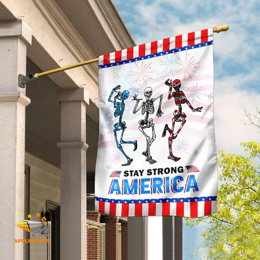 Unifinz Independence Day Flags Skull Dancing Stay Strong America 4th Of July Garden Flag 4th Of July House Flag