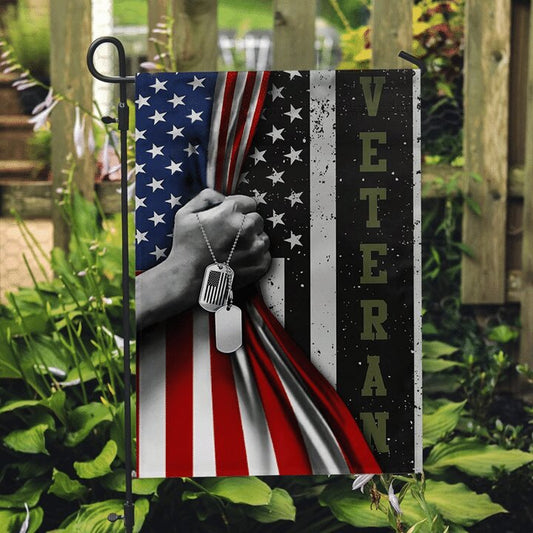 Unifinz Veteran House Flag Veteran Dog Tag American Flag Garden Flag