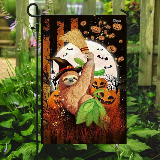 Unifinz Halloween Flag Witch Sloth On Halloween Night Garden Flag