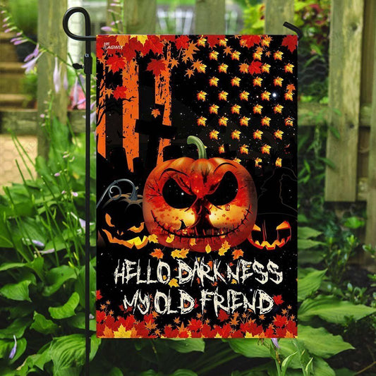 Unifinz Halloween Flag Hello Darkness My Old Friend Halloween Pumpkin Black Orange Garden Flag