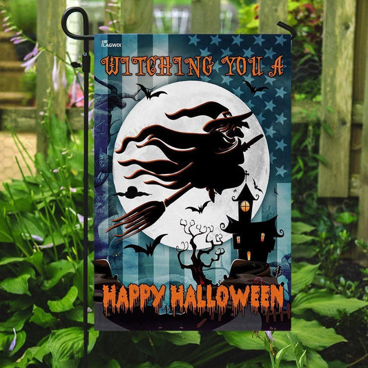 Unifinz Halloween Flag Witching You A Happy Halloween Witch Blue Garden Flag