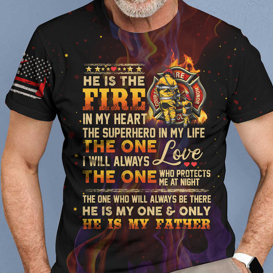 Firefighter All Over T-Shirt He Is The Fire In My Heart Father Tshirt For Fighfighter F174