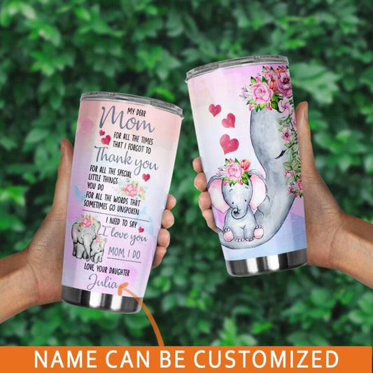 Personalized Mom Tumbler My Dear Mom For All The Times Elephant Tumbler 20oz Custom Mother's Day Gift From Daughter F143