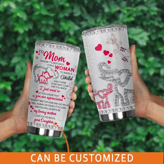Personalized Mom Tumbler To Mom I Know It Not Easy Elephant For Mom Tumbler 20oz Custom Mother's Day Gift F113
