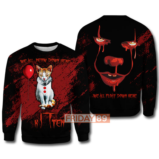 Horror Cat T-shirt We All MEOW Down Here T-shirt Horror Cat Hoodie