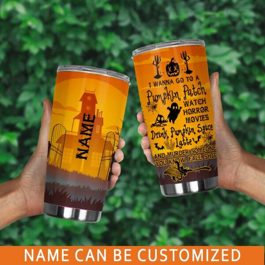 Personalized Halloween Tumbler I Wanna Go To A Pumpkin Patch Halloween Tumbler 20oz Orange