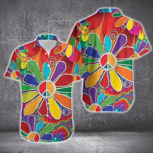 Hippie Shirt Hippie Flowers Peace Signs Colorful Hawaiian Aloha Shirt