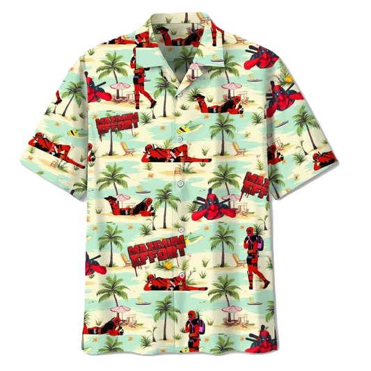 DP Hawaii Shirt MV DP Maximum Effort Tropical Pattern Hawaiian Shirt White Red Unisex