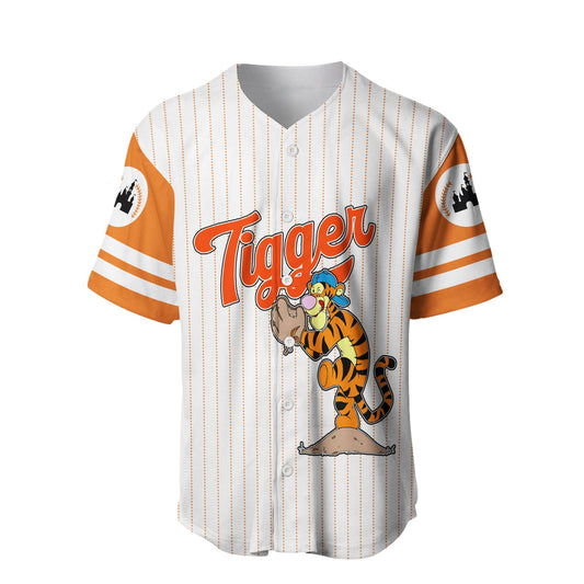 Winnie The Pooh Baseball Jersey Tigger Catches The Ball Winnie The Pooh Jersey Shirt White Orange Unisex Adult